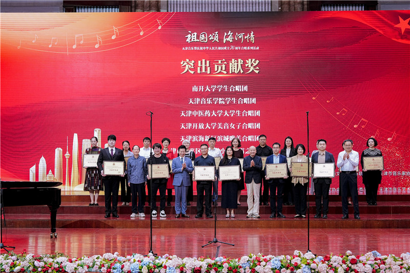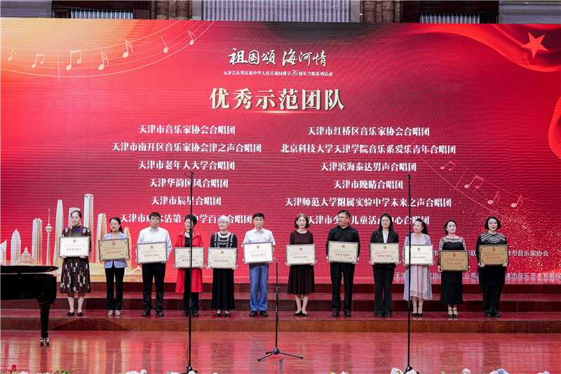 多彩金秋丹桂飘香,海河之滨乐声飞扬。为热烈庆祝中华人民共和国成立76周年,由天津市文联、市音协精心指导,市音协合唱专委会、市音乐艺术发展促进会承办的“祖国颂 海河情——天津音乐界庆祝中华人民共和国成立76周年合唱系列活动”于2025年9月24日隆重开幕。 ![]() 市文联党组书记、专职副主席赵华,中国文联副主席、中国剧协副主席、市文联主席孟广禄,天津音乐学院党委副书记、院长王宏伟,中国音协合唱联盟秘书长、著名作曲家修骏,市文联党组成员、办公室主任郭中元,市委宣传部文艺处相关负责同志,市音协六届主席团全体成员,市文联各部室领导以及我市各区文联、相关院校单位负责同志,文艺界和群众代表等出席本次活动。 ![]() 表彰津门合唱团体 唱响开幕华彩乐章 9月24日14:30,开幕式合唱音乐会在天津音乐厅隆重上演,音乐会共汇聚了7支队伍,既有来自兄弟省市的高水平合唱团队: ![]() 北京市第四中学的金帆合唱团 ![]() 北京科技大学天津学院音乐系爱乐青年合唱团 也有天津本地的高水平合唱团队: ![]() 南开大学学生合唱团 ![]() 天津经济技术开发区国际学校小海燕合唱团 ![]() 天津音乐学院烛光合唱团 ![]() 天津开放大学美音女子合唱团 ![]() 天津市音乐家协会合唱团 他们用充沛的激情和精湛的技艺,演唱了《敕勒歌》《八骏赞》《在希望的田野上》《不忘初心》《天津,我可爱的家乡》《映山红》《我和我的祖国》等十几首红色经典曲目,切实唱响爱国、爱家乡的强劲乐音。 ![]() 2025年,在市委宣传部、天津市文联的正确领导下,天津市音协带领合唱专委会和全市合唱团队,勠力同心,深耕舞台,在全国合唱舞台上大放光彩,取得50项国家级奖项,为天津争得了荣誉。为此,在开幕音乐会上,向19支合唱队伍颁发了示范团队奖和突出贡献奖,对他们深耕合唱艺术、尽抒爱国情怀的有为之举给予肯定与激励。