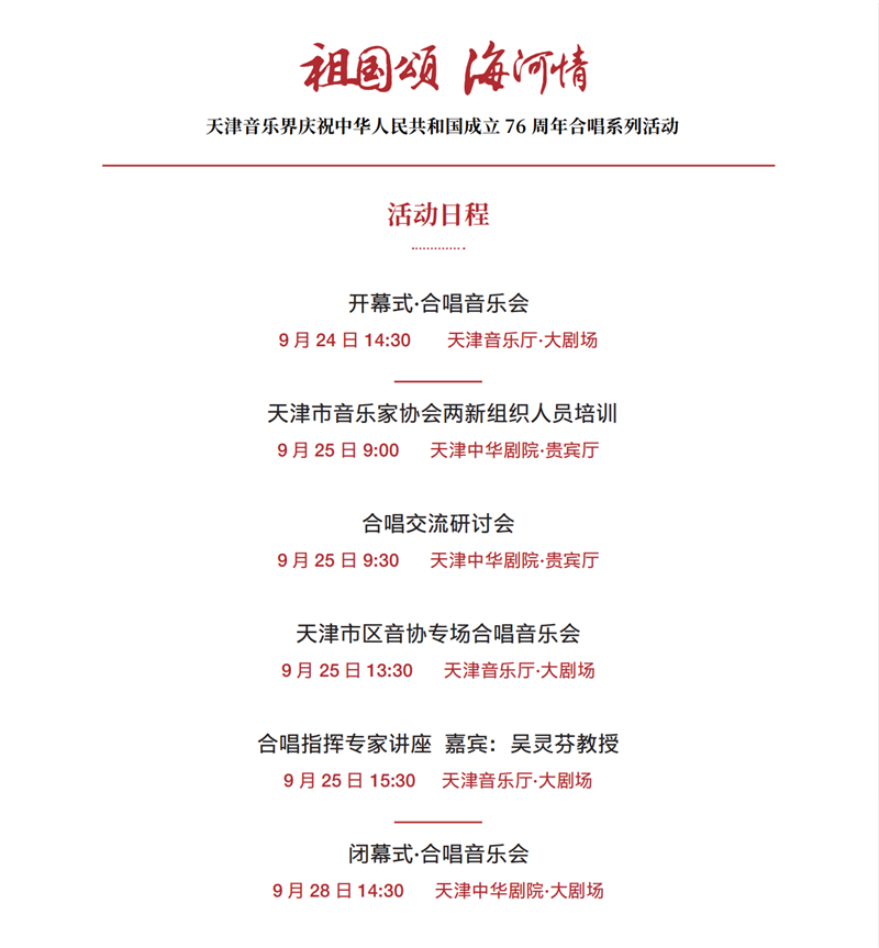 “祖国颂 海河情——天津音乐界庆祝中华人民共和国成立76周年合唱系列活动”拉开序幕 | ||