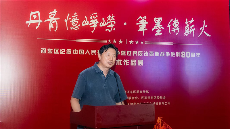 此次画展由中共河东区委宣传部指导,河东区文学艺术界联合会、民革河东区委员会联合主办,河东区美术家协会、天津新岸创意产业投资有限公司共同承办,以“铭记历史、缅怀英烈、弘扬精神”为核心,既通过笔墨丹青深切缅怀为民族独立、人民解放英勇献身的抗战英烈,传承和弘扬伟大抗战精神,也依托艺术创作展现河东区在经济发展、文化建设、社会民生等领域的丰硕成果,生动传递文艺工作者扎根时代、服务人民的使命担当与浓厚家国情怀。