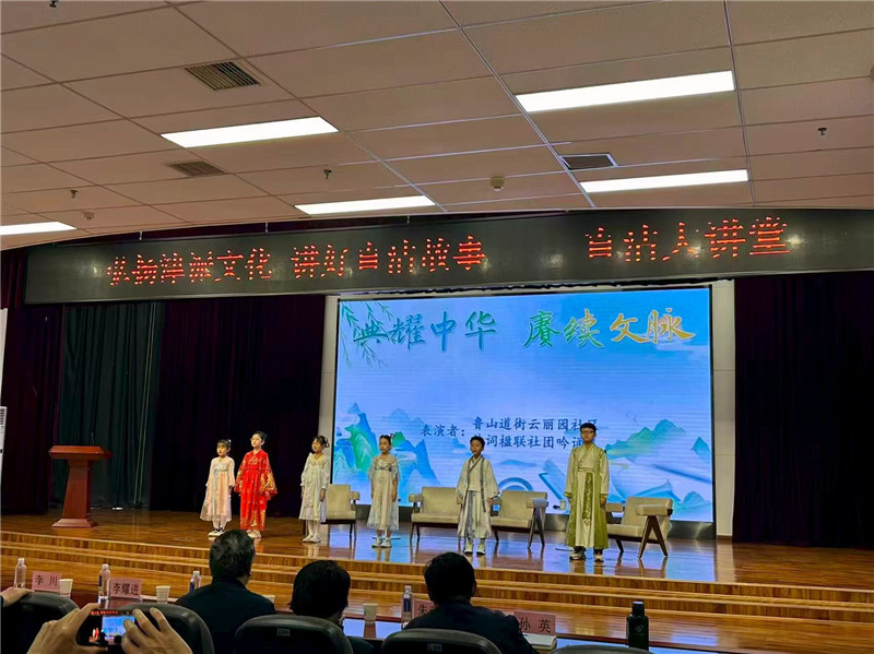 活动中,鲁山道街云丽园诗词楹联社团的古诗文吟诵表演,将传统吟诵艺术与直沽文化相结合。孩子们悠扬的声调、饱满的情感,让《诗经》《楚辞》中的经典篇章跨越千年,在现场观众心中引发共鸣。