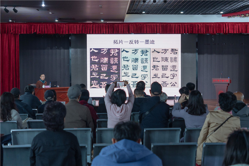 张建会主席以《书法创作中的传承转化》为题,为现场书法爱好者带来了一场精彩的专题讲座。张主席深耕书法艺术数十载,诸体皆精,尤其隶书在全国影响深远。讲座中,张主席结合自身创作经验,围绕中华优秀传统文化的传承发展,深入浅出地讲解了书法艺术的精髓,传递了“艺术为人民”的理念,让在场听众深受启发。