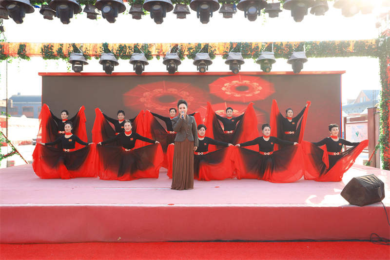 压轴环节,中国音乐金钟奖获得者、天津音乐学院歌剧学院副教授于萍丽献上《玛依拉变奏曲》及歌伴舞《祖国我为你干杯》,精湛的演唱技巧与饱满的情感表达将演出推向最高潮。最后,天津市音协秘书长、一级演员宋茂斌与李玮、赵天刃、陈雅丹携手合唱《小康路上洒满阳光》,宁河区文联舞蹈队与M舞团联袂伴舞,歌甜舞欢、群情激昂,为整场演出画上圆满句号。