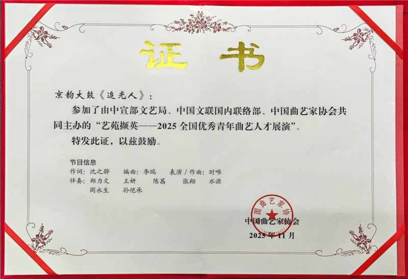 作品:京韵大鼓《追光人》 作词:沈之骅 作曲:时唯 编曲:李瑞 表演:时唯