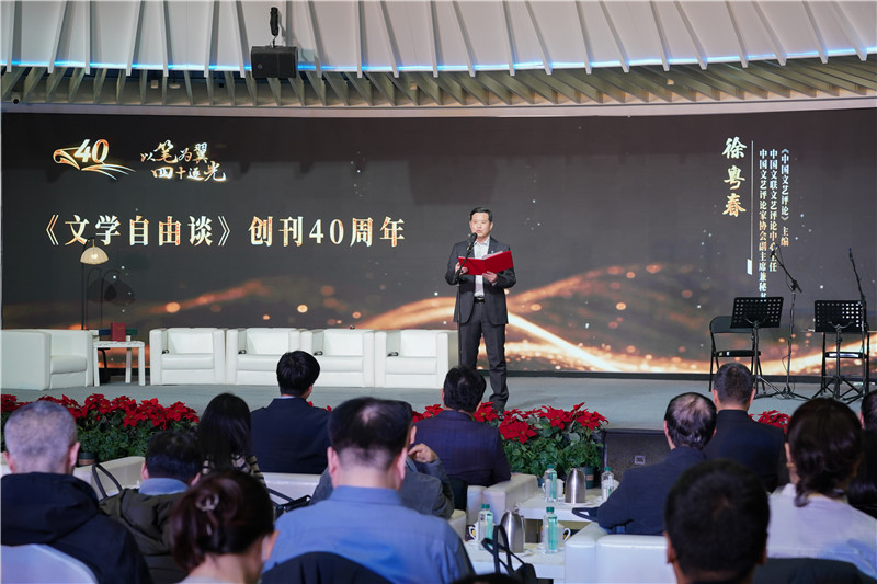 12月12日上午,由天津市委宣传部指导,天津市文联主办,天津市文艺评论家协会、《文学自由谈》编辑部承办的《文学自由谈》创刊40周年系列活动在天津举办。中国文艺评论家协会副主席兼秘书长、中国文联文艺评论中心主任、《中国文艺评论》杂志主编徐粤春在活动现场讲话。