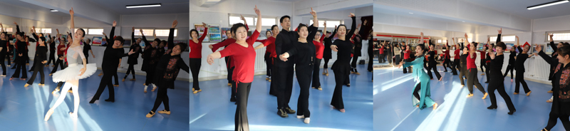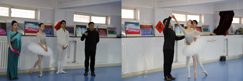这次活动是由市舞协与西青区文化馆主办,西青区大寺镇文化站与王村承办。活动现场,市舞协驻会副主席、秘书长程伟航首先给王村群众带来名为《从“会跳”到“会演”——如何提高群众舞者表演能力》专题课堂,从加强舞蹈专业素养和基本体态训练等核心要点切入,为群众舞者讲解怎样才能提高表演水平。随后,天津歌舞剧院芭蕾舞团袁帅、毕烨与歌舞团乔安娜为大家表演了浪漫芭蕾双人舞与民间舞胶州秧歌,不同风格与舞种的高水平展示赢得满堂喝彩。表演过后,三位专业舞者化身“公益导师”,开展芭蕾基础与中国舞身韵实操教学,手把手纠正动作姿态、指导韵律把控。舞蹈室内,阿姨们跟随节奏舒展身姿,专注的神情与灿烂的笑容相映成趣,专业指导与群众热情碰撞出别样的新春文化火花。