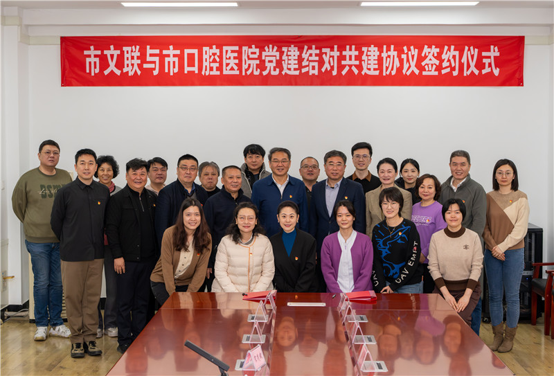1月15日,天津市文联与天津市口腔医院成功签署党建结对共建协议。市文联党组书记、专职副主席赵华,党组成员、二级巡视员刘志勇,党组成员、办公室主任郭中元,市口腔医院党委书记吴小明、纪委书记孙萍及我会各文艺家协会负责同志、医护人员代表共同见证这一跨界合作的重要时刻,开启“党建引领、文化赋能、医疗惠民”的融合发展新篇章。