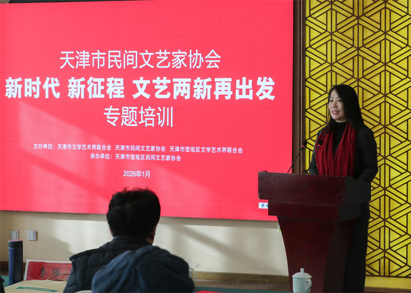 1月21日,由天津市文联、天津市民协、宝坻区文联共同主办,宝坻区民协承办的“新时代 新征程 文艺两新再出发”专题培训在宝坻区长城宾馆举办。市文联秘书长张建鹏,宝坻区委宣传部副部长杨占岭,市民协副主席、秘书长张书珍,宝坻区文联专职副主席白秀霞出席活动。来自全市的50余位新文艺群体艺术家齐聚一堂,以学赋能,共探民间文艺传承创新之路。