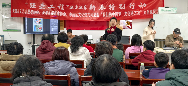 为深入学习贯彻习近平文化思想,落实“以文化人、以文惠民、以文润城、以文兴业”重要要求,扎实推进“强基工程”,1月28日,天津市文艺志愿者协会、天津市摄影家协会、东丽区文化馆共同发起“我们的中国梦—文化进万家”文化惠民活动,走进东丽区军粮城街道军丽园社区推出“小小冰箱贴,暖暖津城情,大大幸福梦”公益文化活动,将优质文化资源送到居民家门口,让社区群众在家门口享受高质量公共文化服务,在新春来临之际感受文艺暖心温度。