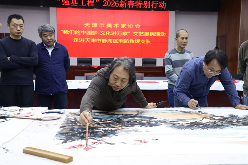 ![]() 翰墨暖营区,丹青贺新春。新春佳节来临之际,“强基工程”2026新春特别行动——天津市美术家协会“我们的中国梦—文化进万家”文艺惠民活动走进天津市静海区消防救援支队,为坚守岗位的消防员送上新春文化盛宴,以笔墨深情致敬“火焰蓝”。 中国美协副主席、天津市美协主席贾广健,天津市美协驻会副主席兼秘书长张福有,天津市美协副主席白鹏、周午生、张晓彦、魏云飞,著名画家张玉忠、刘学峰、张红晨、田怀良,静海书画院院长赵红云,静海书画院全体书画家出席活动。 ![]() 活动当天,艺术家们与消防指战员开展了交流座谈,静海区消防救援支队党委副书记边东亮详细介绍了支队建设情况。他表示,希望消防员的每一份坚守、每一次奔赴,都能为艺术创作提供最鲜活的素材。 贾广健表示,此次活动旨在以笔墨丹青致敬最美逆行者,用艺术之美传递新春祝福,让文化惠民之光照亮营区。张福有表示,此次活动是市美协新一届主席团的第一次集体活动,参加活动画家均为市美协的重要成员,下一步,市美协将持续深化与基层的交流合作,把更多优质文艺作品送到基层一线,让艺术之花在营区绽放。 ![]() ![]() ![]() 活动中,书画家们走进营区,近距离参观器材装备、队史馆、指挥中心等场所,深入了解消防员的日常,沉浸式感受消防队伍枕戈待旦、逆行而上的英雄气概,为后续主题创作积累丰富素材。在书画创作环节,书画家们挥毫泼墨,与消防队员亲切互动,共同创作,将新春美好祝福融入笔墨之间。遒劲有力的福字、意境深远的画作,不仅是专属创作的“文化年货”,更让大家感受到了来自文艺界的关爱与温暖。 ![]() ![]() ![]() ![]() 此次文艺惠民活动,是“强基工程”2026新春特别行动的重要组成部分,更是深化志愿服务,让文艺之花绽放在津沽大地的生动写照。下一步,天津市美协将持续深化“强基工程”文艺志愿服务,以高质量文艺作品服务人民群众,为天津文化事业高质量发展贡献美术力量。 ![]() |