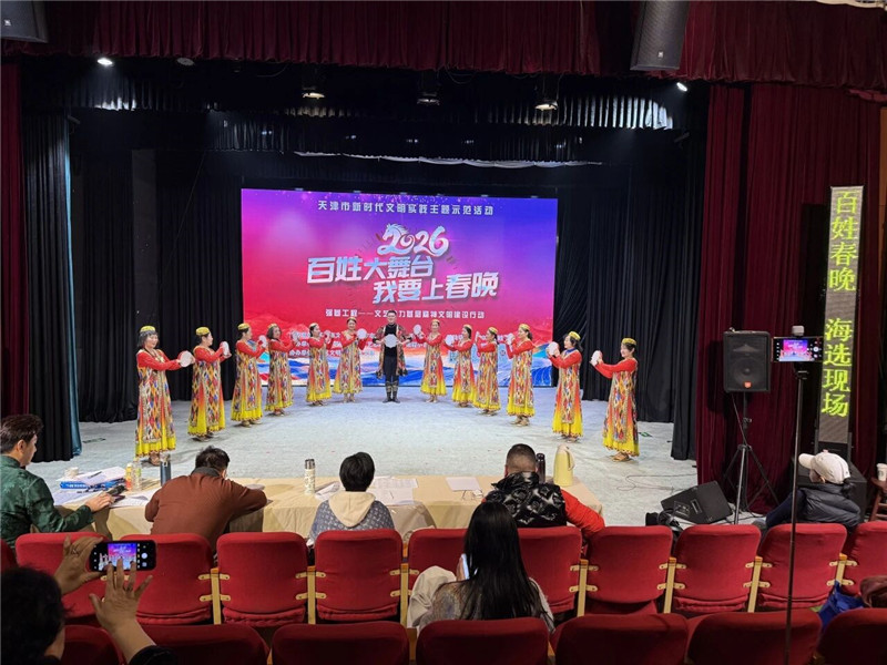 专业赋能提质效 基层文艺人才梯队渐成型 坚持“强基提质”核心目标,活动将专业指导贯穿海选、晋级、排练、展演全流程,实现“选拔一次、培育一批、带动一片”的育人效果。2026年1月3日至8日,十场线下海选在荣程小百花剧场有序举办,主办方组建由各文艺协会骨干组成的专家评委团,围绕专业基础、艺术表现力、作品内涵、综合效果等维度公平评审,并现场开展一对一精准指导,优化合唱和声、打磨曲艺唱腔、调整语言类节目剧本,让基层文艺爱好者在实战中提升艺术素养。 经过严格遴选,50个优秀节目、6位百姓主持人成功晋级。1月17日,晋级赛在天津海河传媒中心800演播大厅举办,并通过“新文艺TJ”视频号全程直播,近7小时直播吸引1.2万人次观看、收获11.4万次点赞,成为基层文艺展示的线上盛会。最终,《纸韵锋尚》《威风锣鼓》两个节目斩获直通春晚资格,其余优秀节目进入密集排练阶段,百姓主持人与专业主持人搭档同台,让“百姓当家、群众主角”的理念落地生根。