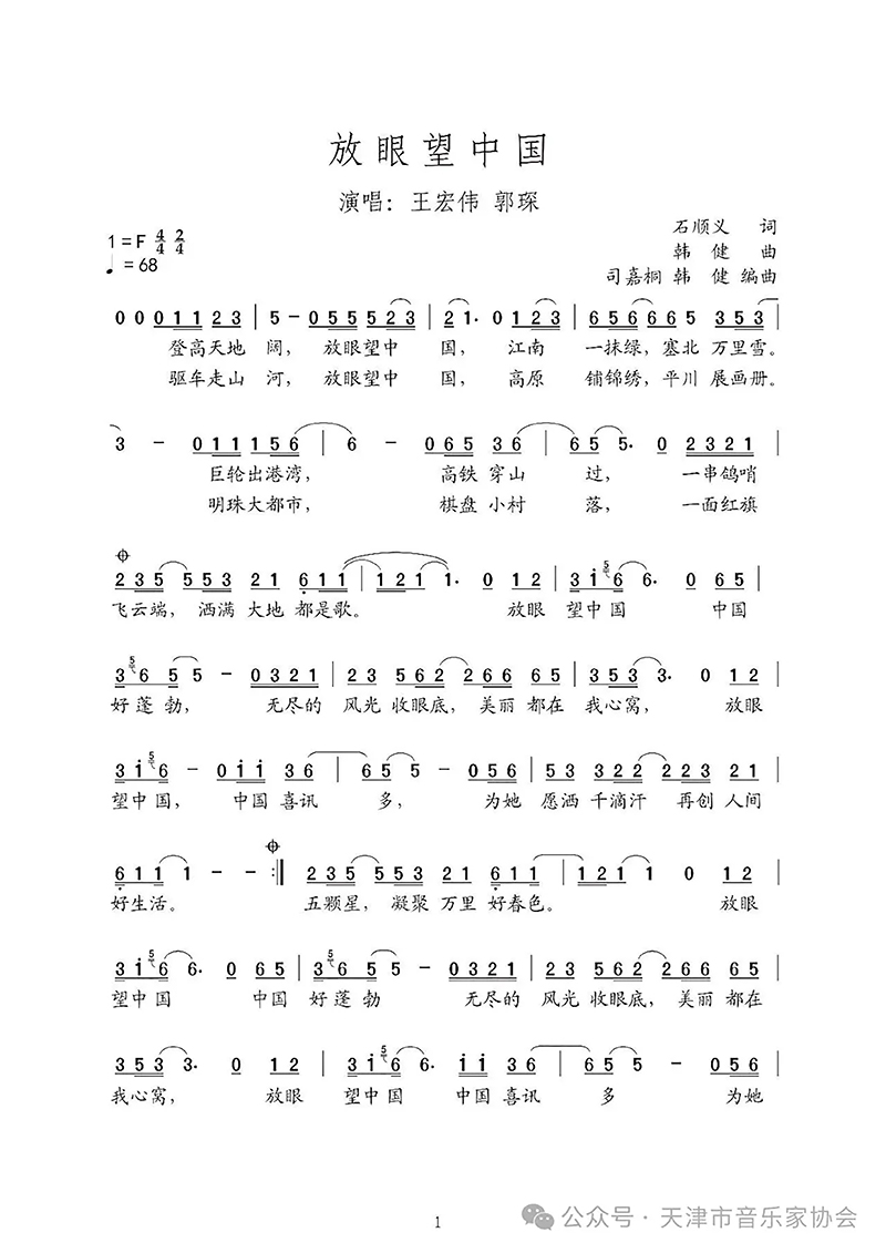 津门起宏声,山河应和音。近日,由天津市委宣传部指导,天津市文联、天津市音协打造的2025年度精品歌曲创作工程再添力作——《放眼望中国》音乐电视片正式首发。作品由石顺义作词、韩健作曲,天津市音乐家协会主席、著名男高音歌唱家王宏伟和中国东方演艺集团抒情花腔女高音郭琛共同倾情演唱,天津市电影家协会担纲摄制。歌声荡气回肠,画面雄浑壮阔,以音画交织的艺术笔触,致敬祖国、礼赞时代。 ![]() ![]()