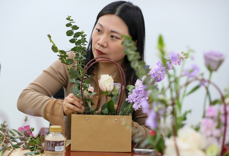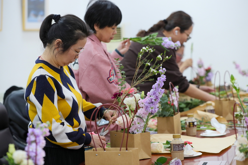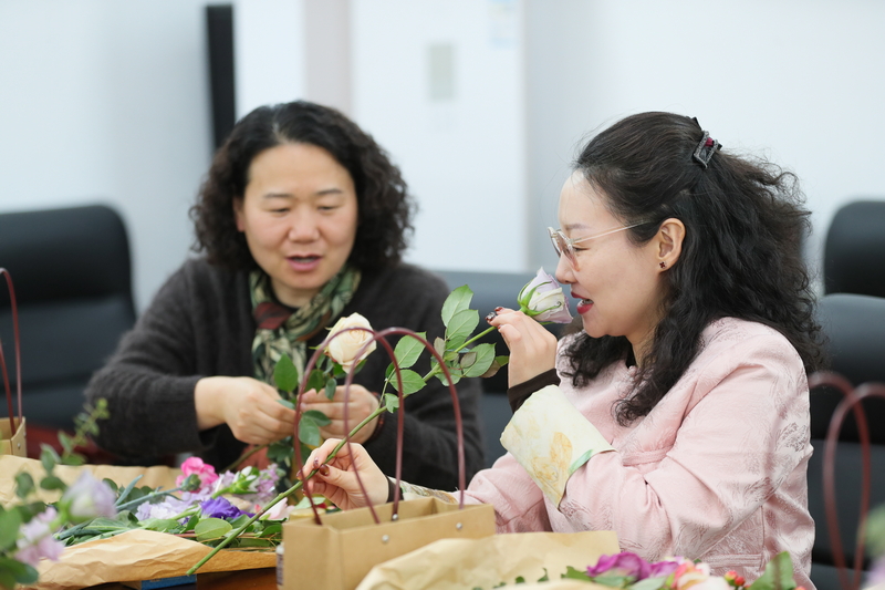 三月春风暖,花香满庭芳。在第116个“三八”国际妇女节到来之际,天津市文联举办了“实干开新局 巾帼绽芳华”主题插花活动。市文联党组书记、专职副主席赵华,党组成员、二级巡视员刘志勇亲临现场看望慰问女职工,与大家共度温馨节日。赵华书记代表党组向全体女同胞致以节日的诚挚祝福。他表示,过去一年里,文联各项工作扎实推进、成果丰硕,这其中凝聚着广大女职工的智慧和汗水,许多女同志奋战在关键岗位,勇于担当、甘于奉献,为文联事业发展作出了重要贡献。他衷心感谢大家的辛勤付出,并祝愿每一位女职工在新的一年里家庭幸福美满,老人们健康长寿,孩子们健康成长。温暖的话语赢得现场阵阵掌声。