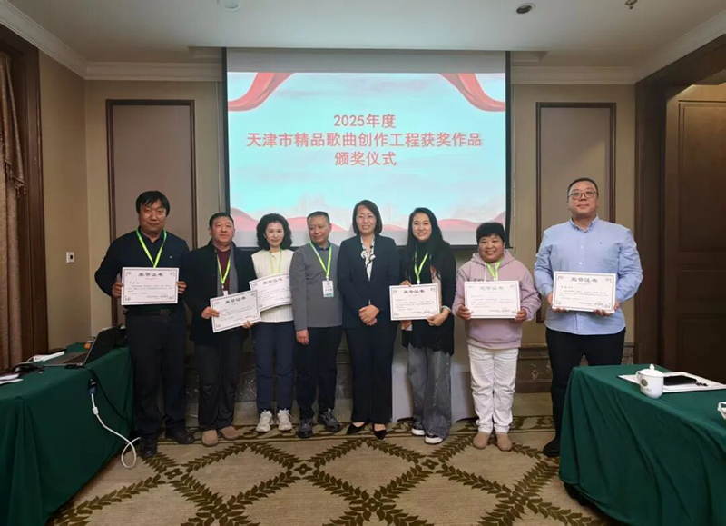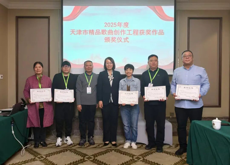研讨会上举行了2025年度天津市精品歌曲创作工程优秀作品颁奖仪式,获奖作品《放眼望中国》、《大先生》、《流光溢彩》、《这座城你要走一走》的词曲作者作为代表发言,分享了创作理念与艺术思考。